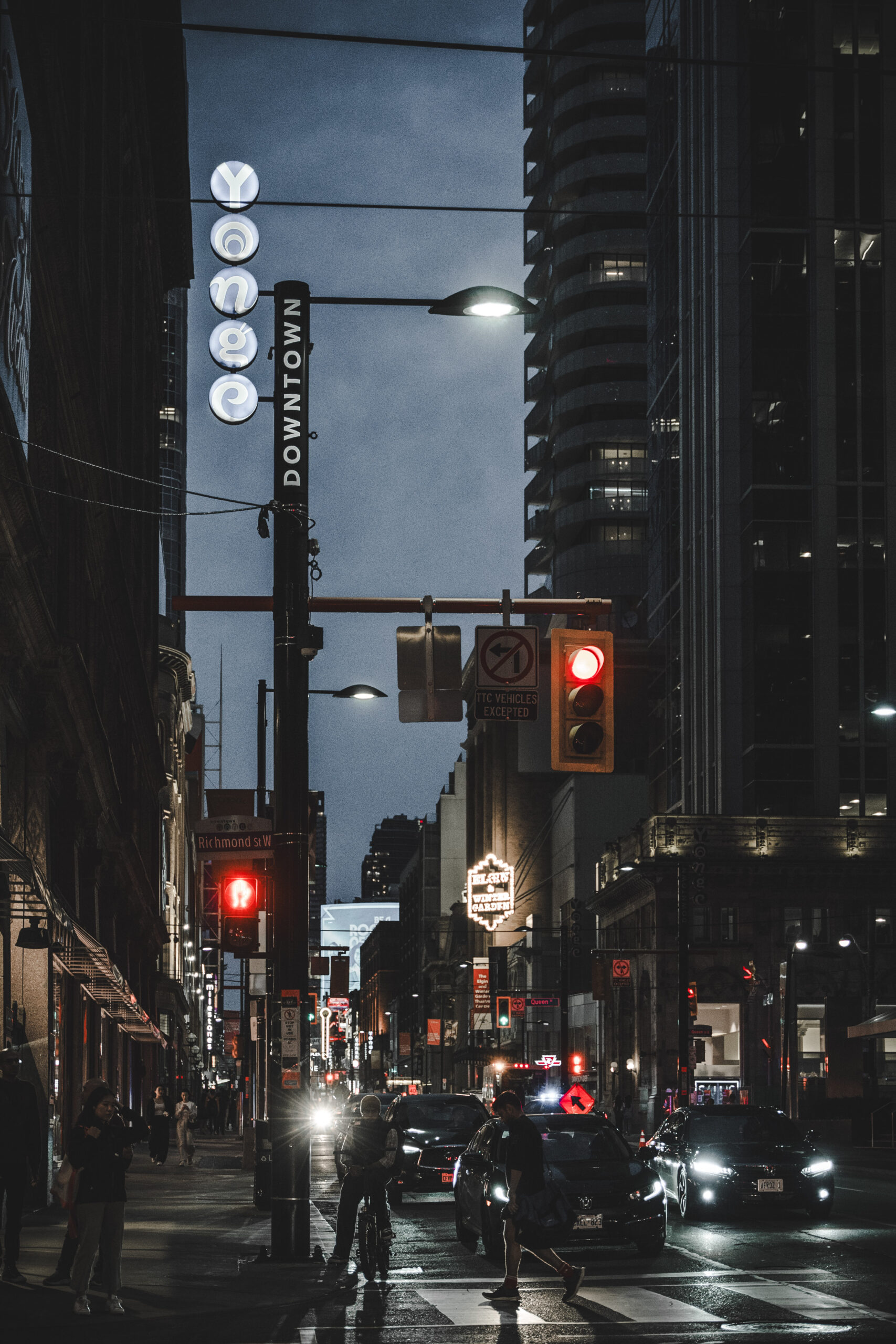 That first night was for getting our bearings. Quick photos on Yonge, in nearby squares, a first try of the subway. Tall, imposing buildings, lights reflecting off the glass, and that city rhythm that pulls you along. Also, a strange feeling: Toronto is safe, yes, but in some parts of downtown at night it feels a bit chaotic—lots of recreational cannabis (legal in Canada since 2018), parties, noise. Nothing serious. Just a contrast with the idea of “perfect order” you carry in your head.