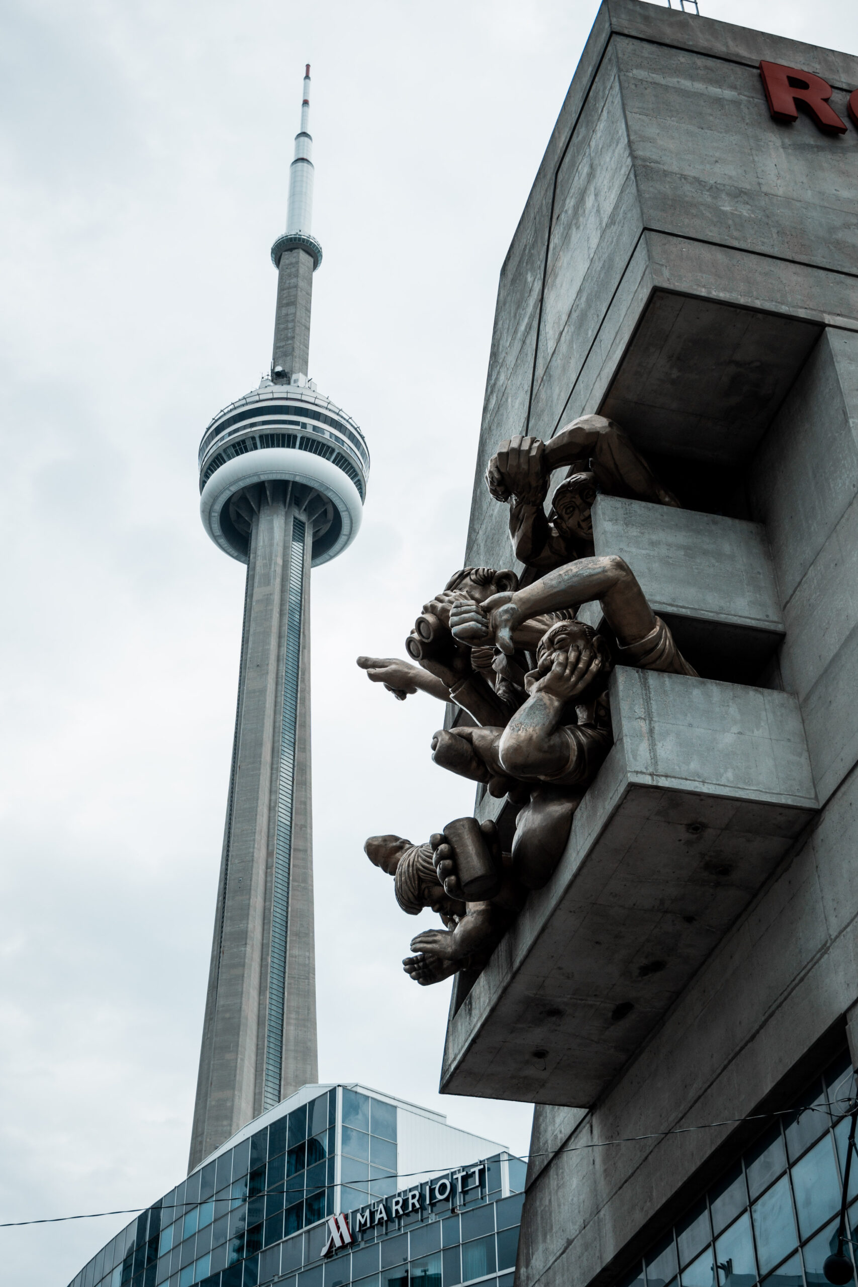 The next day was about the essentials. We started at Nathan Phillips Square, in front of Toronto City Hall: the modern, curved building standing beside the old stone City Hall, almost like a conversation between eras. And from there, Toronto’s top landmark: the CN Tower. For years it was the tallest freestanding structure in the world (until 2007) so it shows up from any direction. You peek around a corner and there it is, slicing between buildings, dominating the skyline.