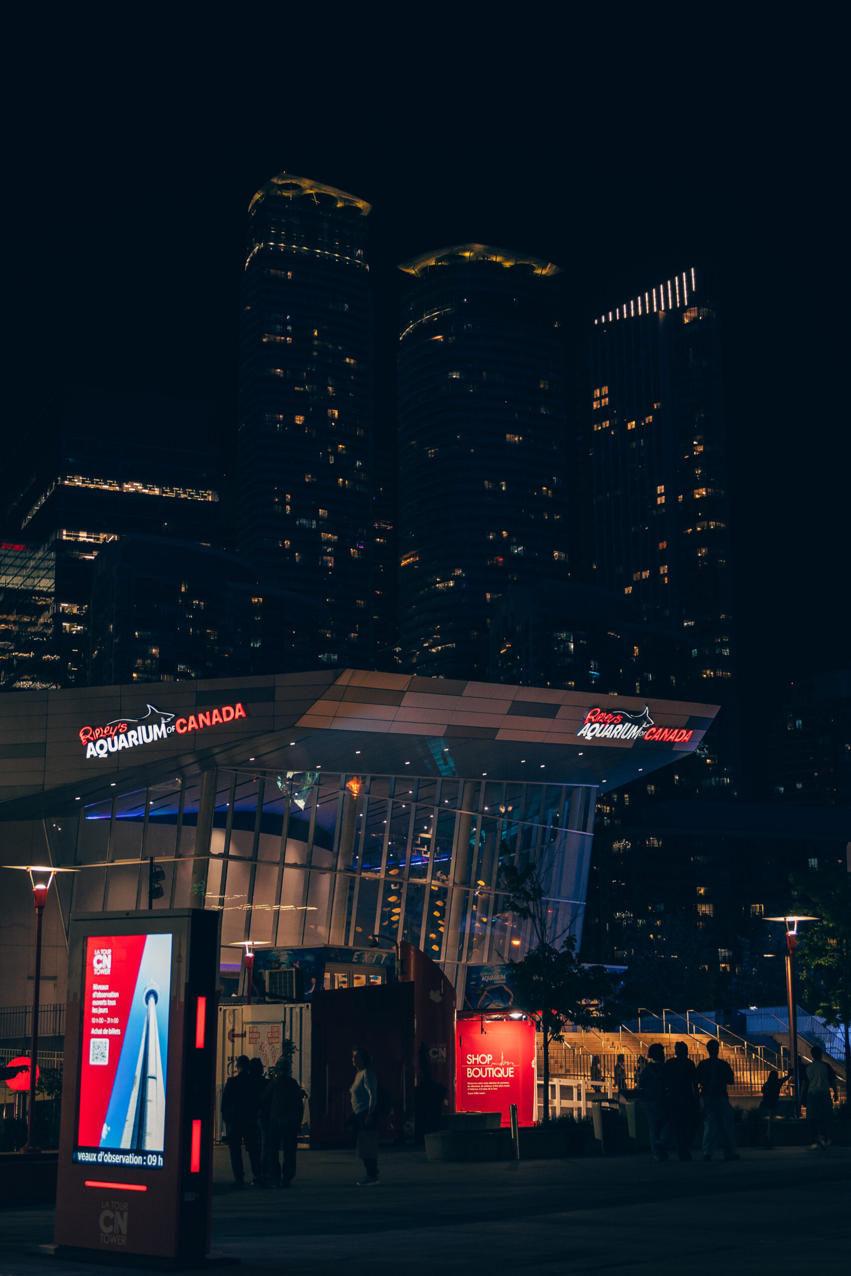 Before going up, we bought the CityPASS and visited Ripley’s Aquarium of Canada. Nice, well done, a must if you’re into aquariums. If not, maybe not life-changing. We stepped out into the plaza by the Rogers Centre (home of the Blue Jays), with everything so “compact”: CN Tower, aquarium, stadium, Union Station nearby. That part of the city makes Toronto feel walkable.