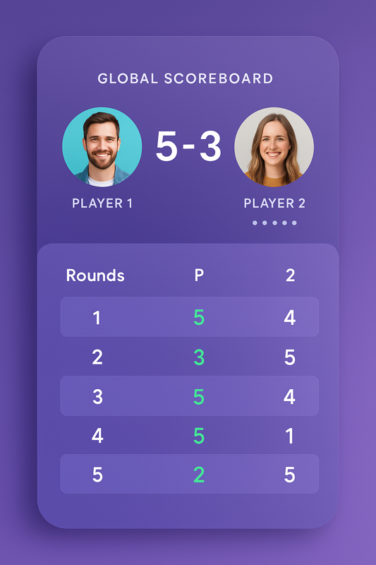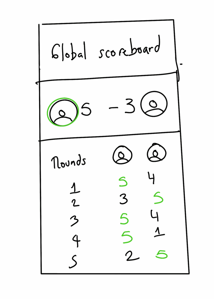 When the users click on END ROUND, it should save that round in PHP SESSION and populate the global scoreboard as well as the detail of each round, highlighting the winner in each.