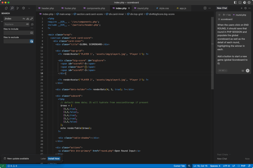 We’ll leave Cursor doing its magic until we have a result. For now, we won’t iterate on the result to improve it, just use the finished app as is; to simplify this example.